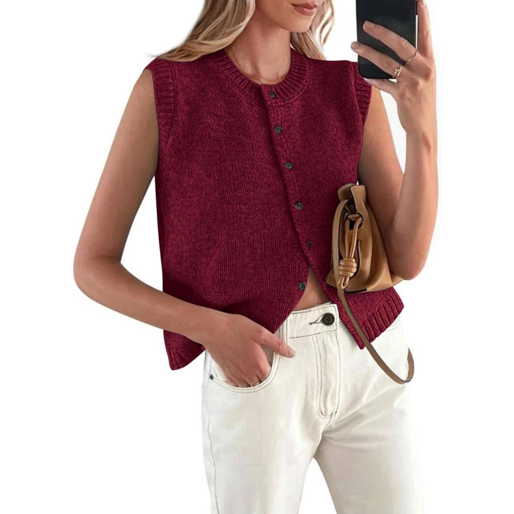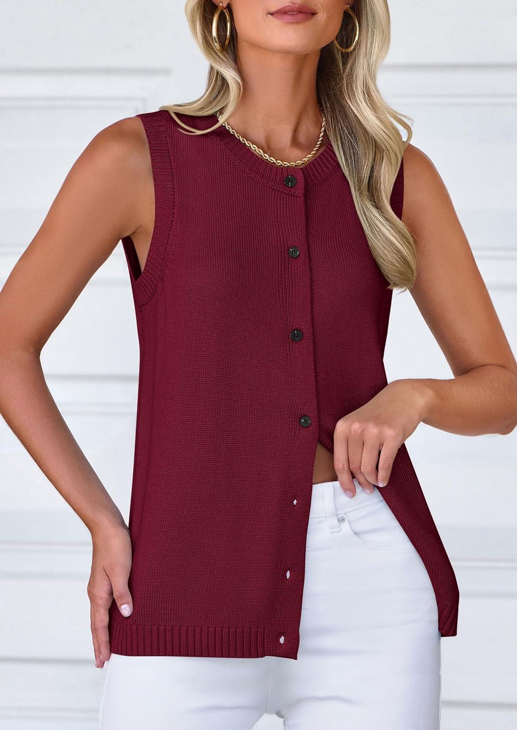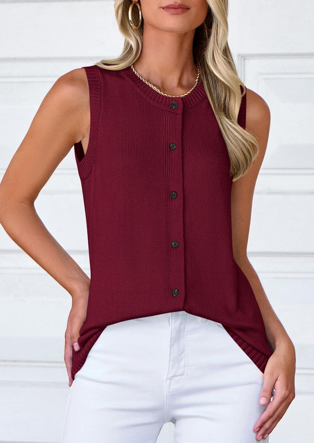 PRETTYGARDEN Womens Sweater Vest Cardigans 2025 Fall Lightweight Casual Sleeveless Button Down Knit Tank Tops(Dark Wine Red)