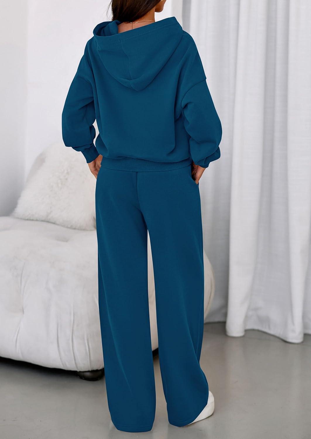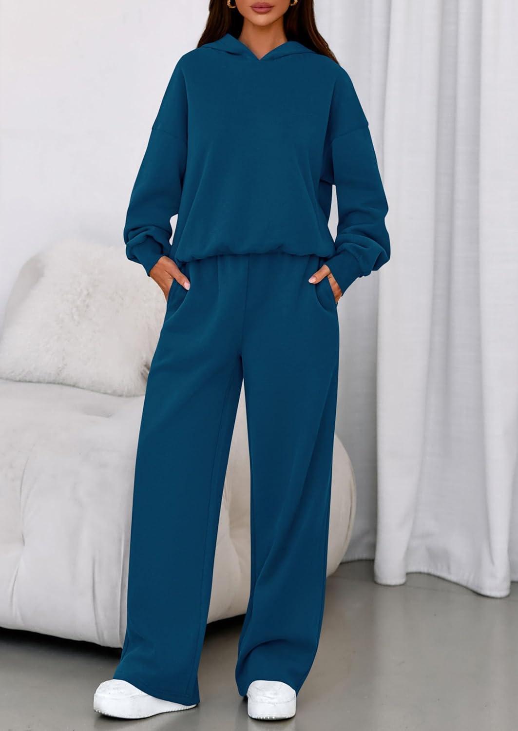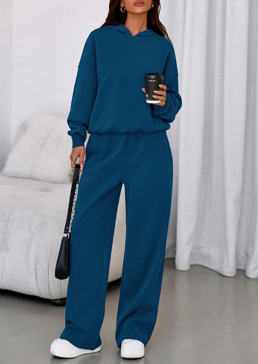 PRETTYGARDEN Womens Sweatsuits 2 Piece Set 2025 Casual Winter Long Sleeve Hoodie Loose Wide Leg Sweatpants Fall Tracksuit(Dark Blue)