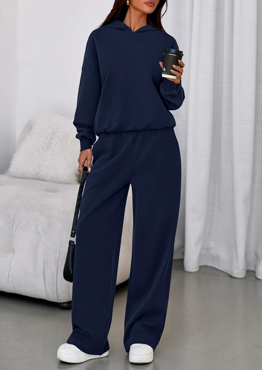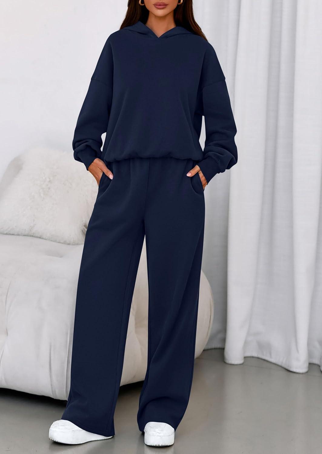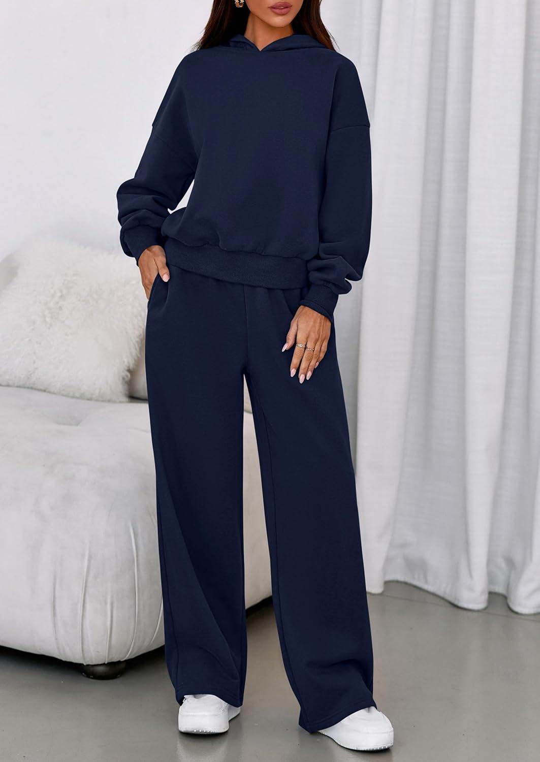 PRETTYGARDEN Womens Sweatsuits 2 Piece Set 2025 Casual Winter Long Sleeve Hoodie Loose Wide Leg Sweatpants Fall Tracksuit(Navy Blue)