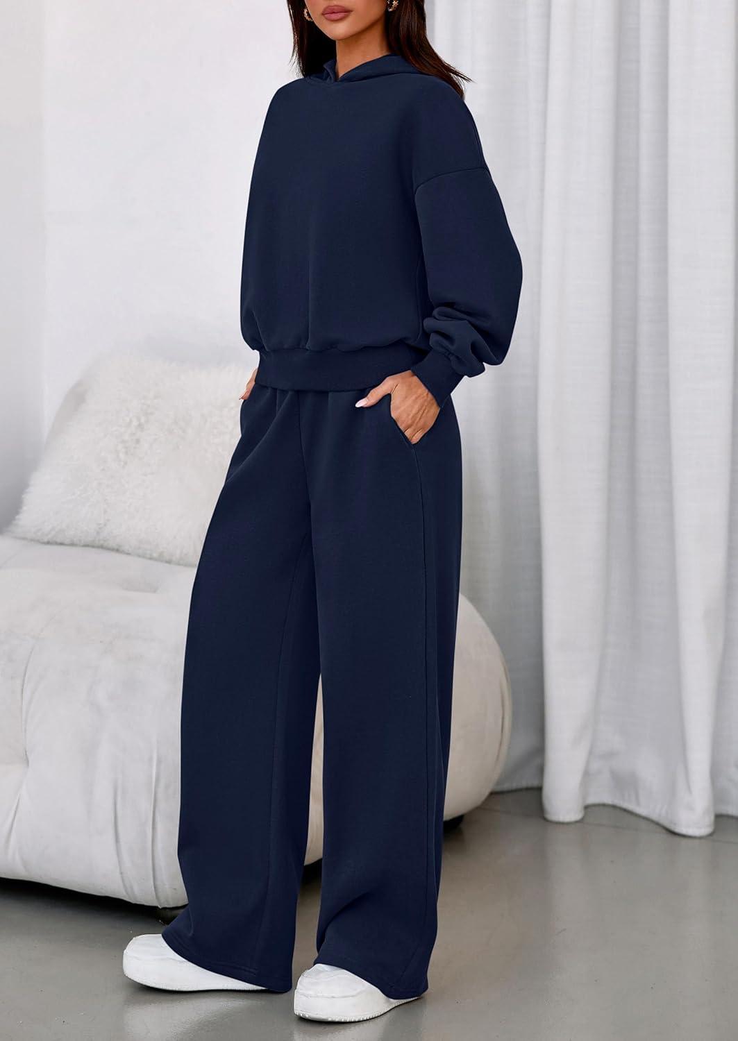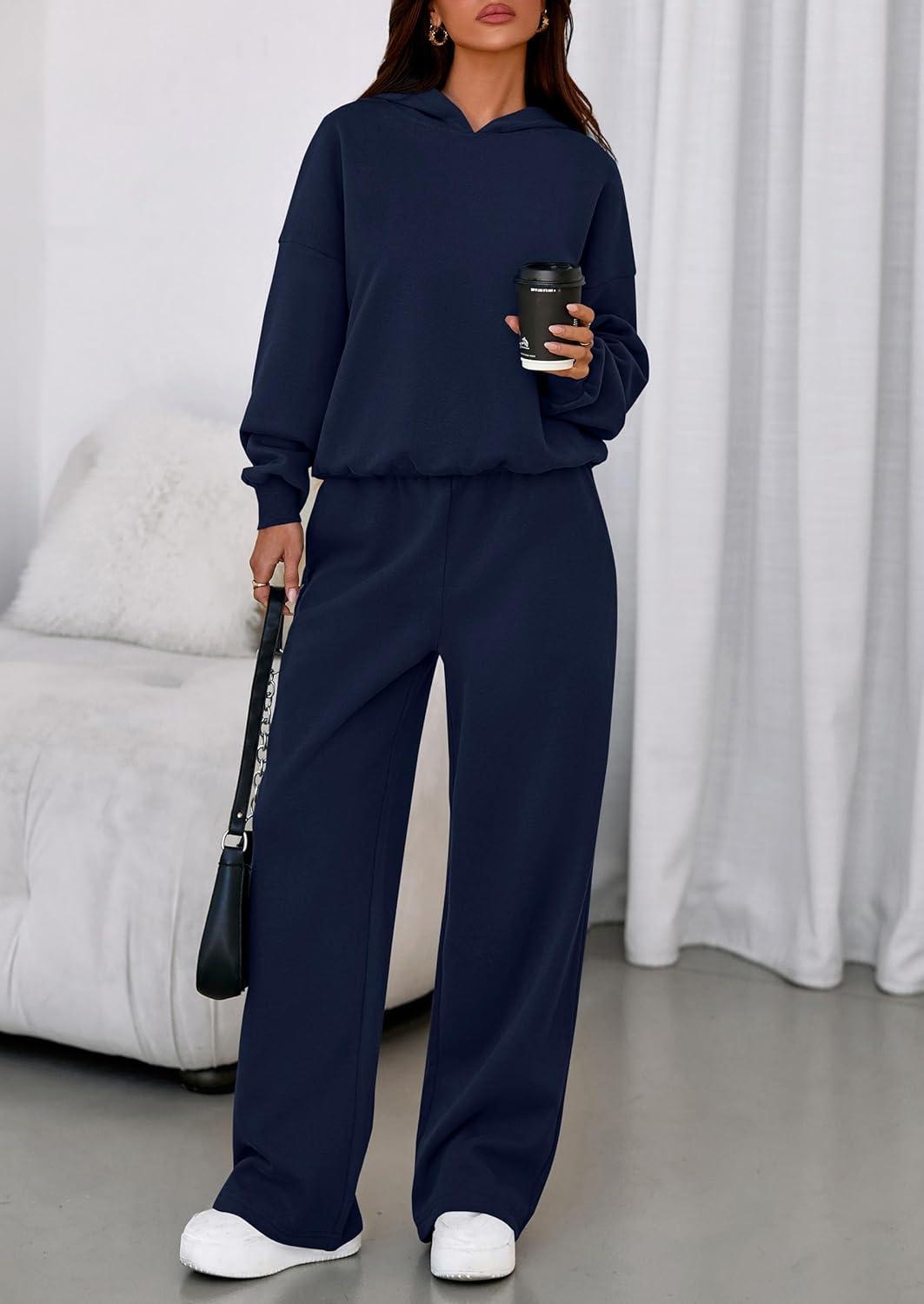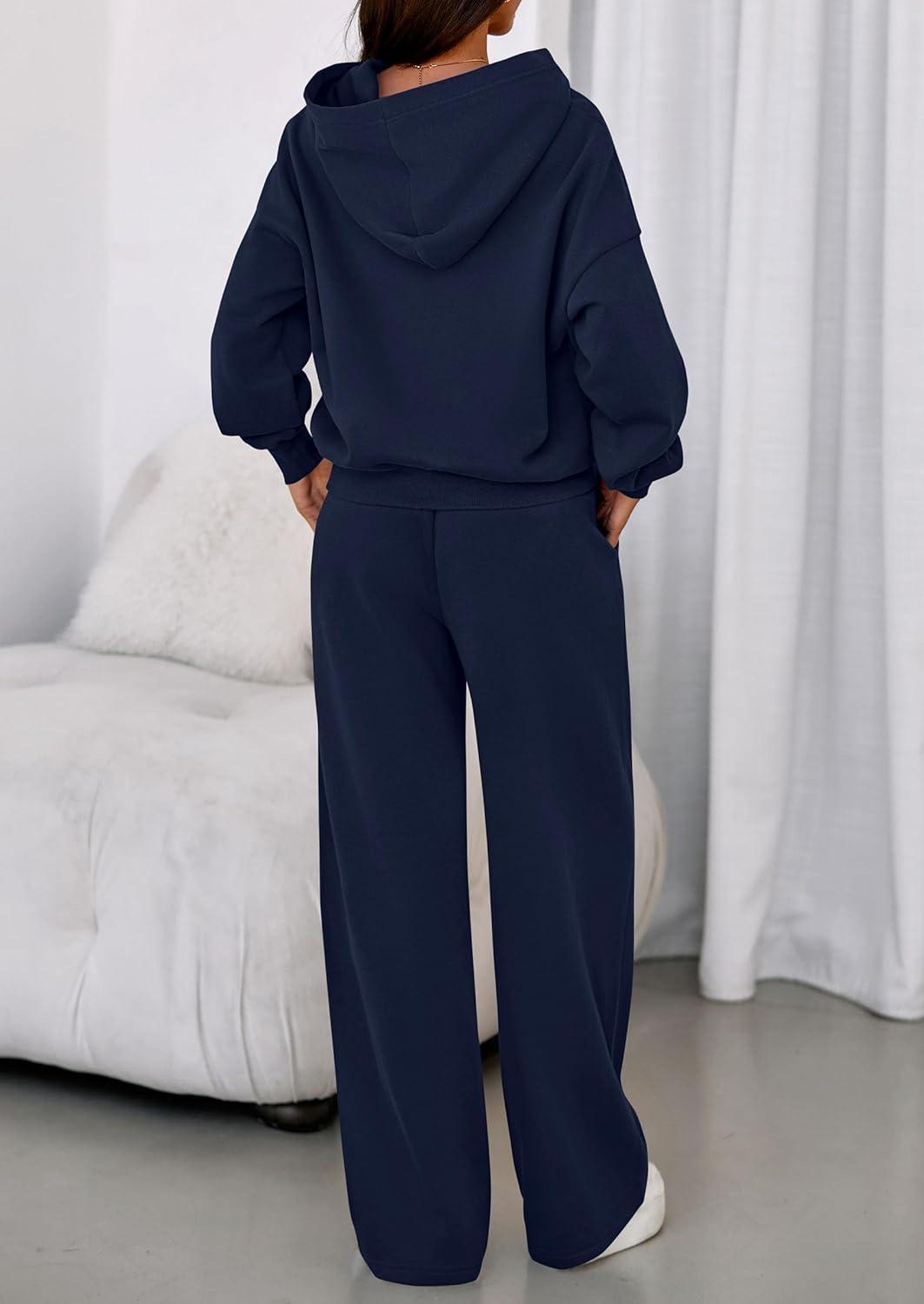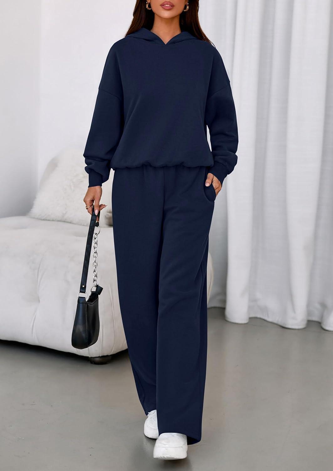 PRETTYGARDEN Womens Sweatsuits 2 Piece Set 2025 Casual Winter Long Sleeve Hoodie Loose Wide Leg Sweatpants Fall Tracksuit(Navy Blue)