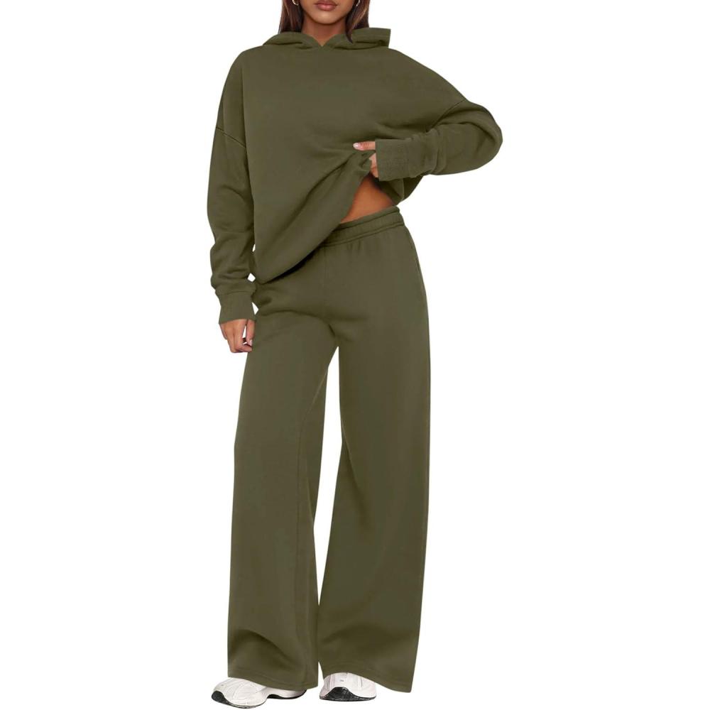 PRETTYGARDEN Womens Sweatsuits 2 Piece Set 2026 Casual Winter Long Sleeve Hoodie Loose Wide Leg Sweatpants Fall Tracksuit(Army Green)