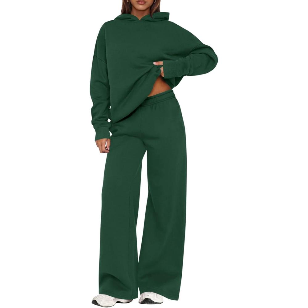 PRETTYGARDEN Womens Sweatsuits 2 Piece Set 2026 Casual Winter Long Sleeve Hoodie Loose Wide Leg Sweatpants Fall Tracksuit(Dark Green)