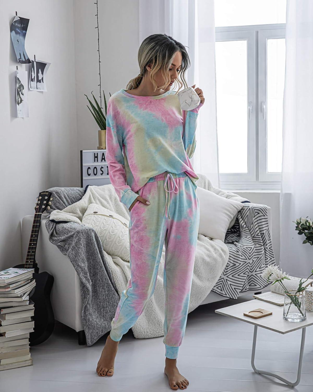 imagePRETTYGARDEN Womens Two Piece Loungewear Fall Casual Long Sleeve Tops Jogger Pants Pajama Sets Matching Outfits ClothingMulticolor
