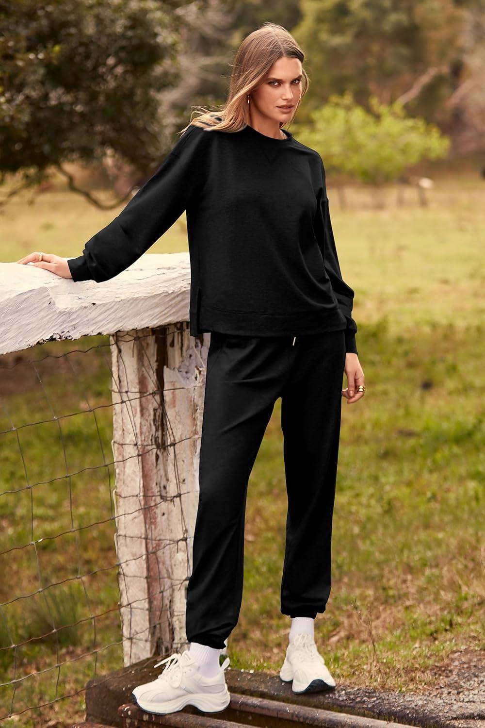 PRETTYGARDEN Women's Two Piece Loungewear Fall Casual Long Sleeve Tops Jogger Pants Pajama Sets Matching Outfits Clothing(Solid Black)