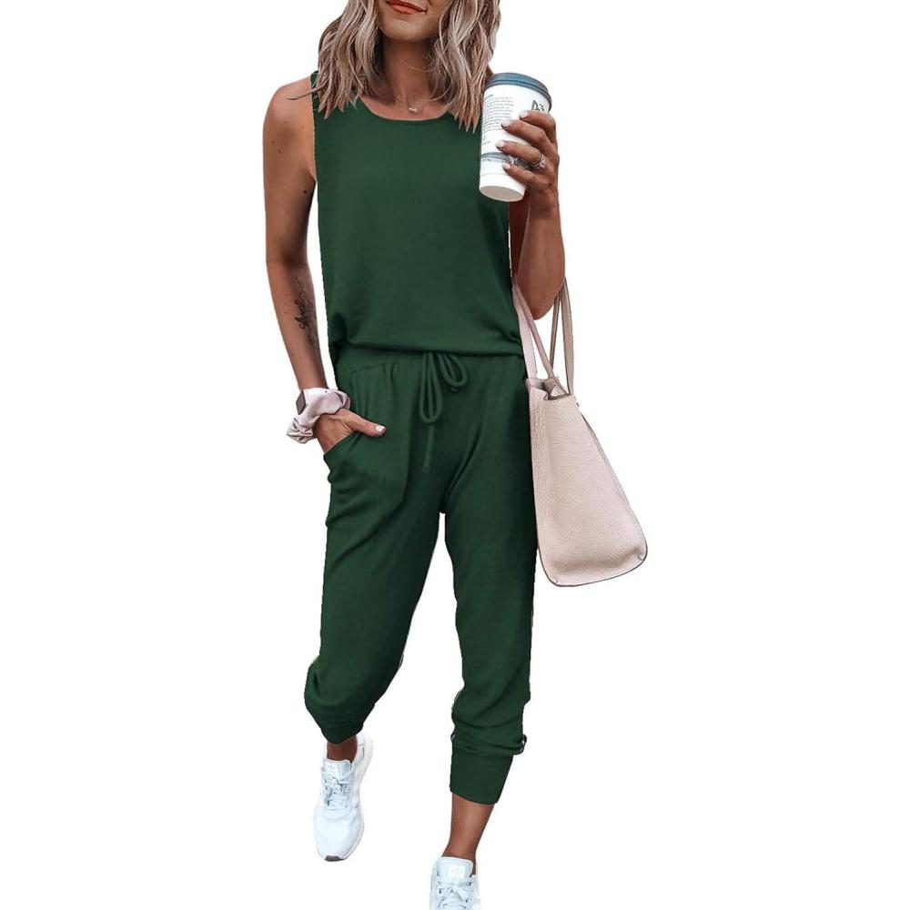 PRETTYGARDEN Women's Two Piece Outfit Sets Summer Casual Sleeveless Crewneck Tops Matching Travel Tracksuit Lounge Wear(Dark Green)