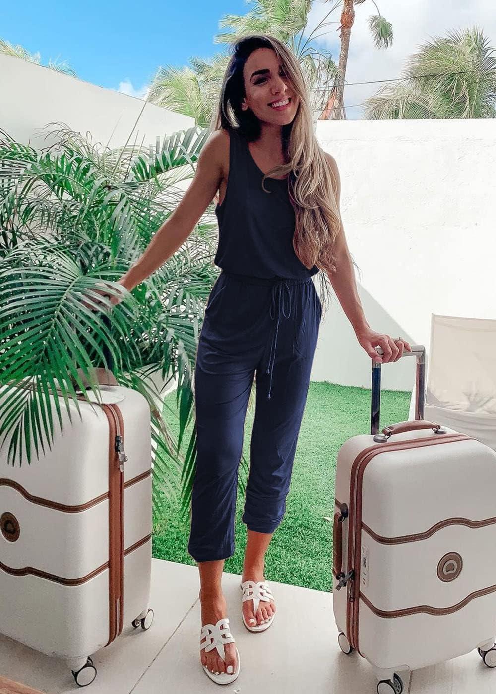 PRETTYGARDEN Women’s Two Piece Outfit Sets Summer Casual Sleeveless Crewneck Tops Matching Travel Tracksuit Lounge Wear(Navy)