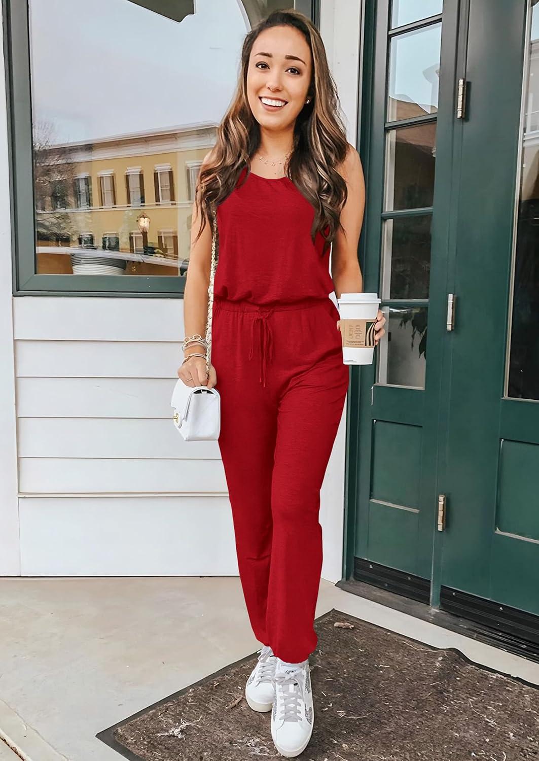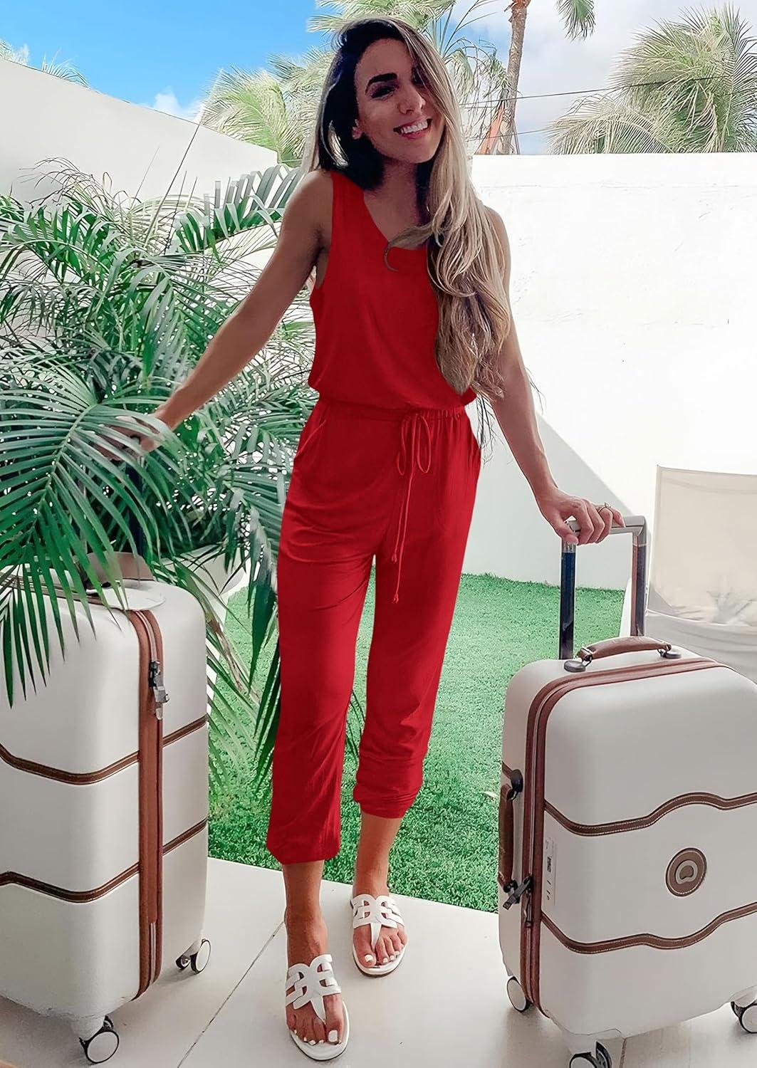PRETTYGARDEN Women’s Two Piece Outfit Sets Summer Casual Sleeveless Crewneck Tops Matching Travel Tracksuit Lounge Wear(Red)