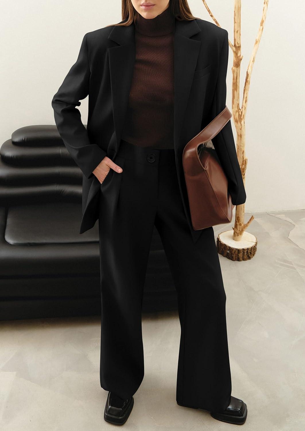 PRETTYGARDEN Women's Two Piece Outfits Dressy Blazer Jacket Wide Leg Pants 2025 Fall Business Casual Office Work Suit Sets(Black)