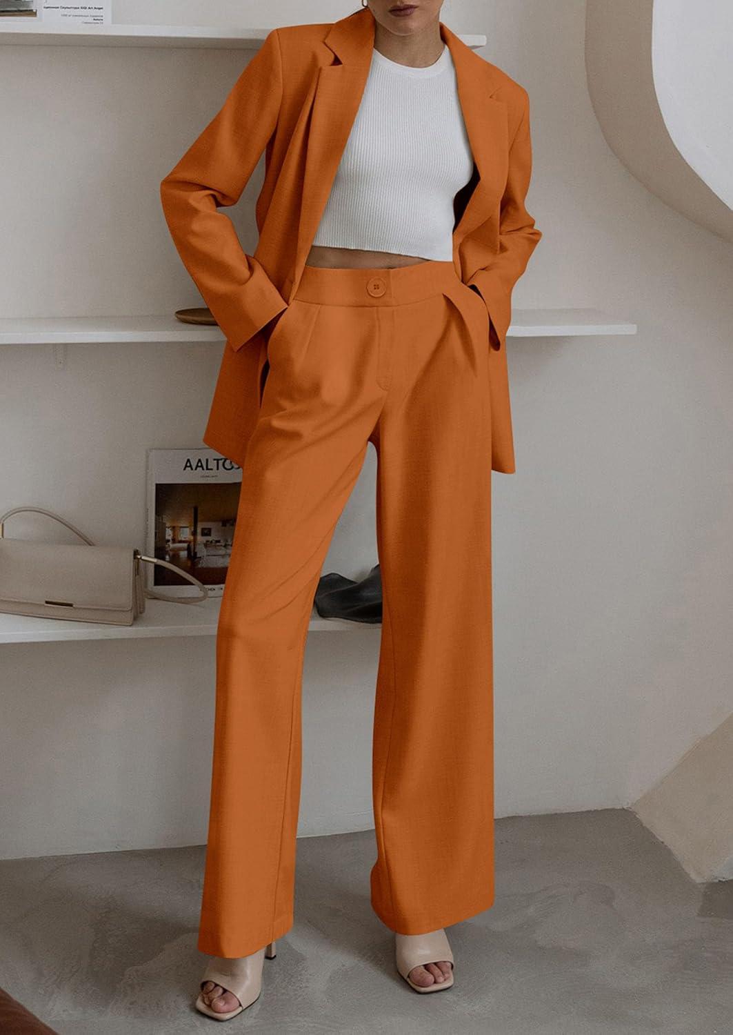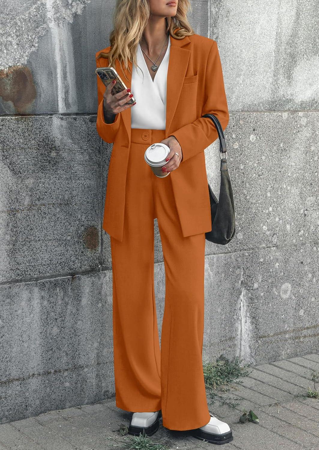 PRETTYGARDEN Women's Two Piece Outfits Dressy Blazer Jacket Wide Leg Pants 2025 Fall Business Casual Office Work Suit Sets(Brown)