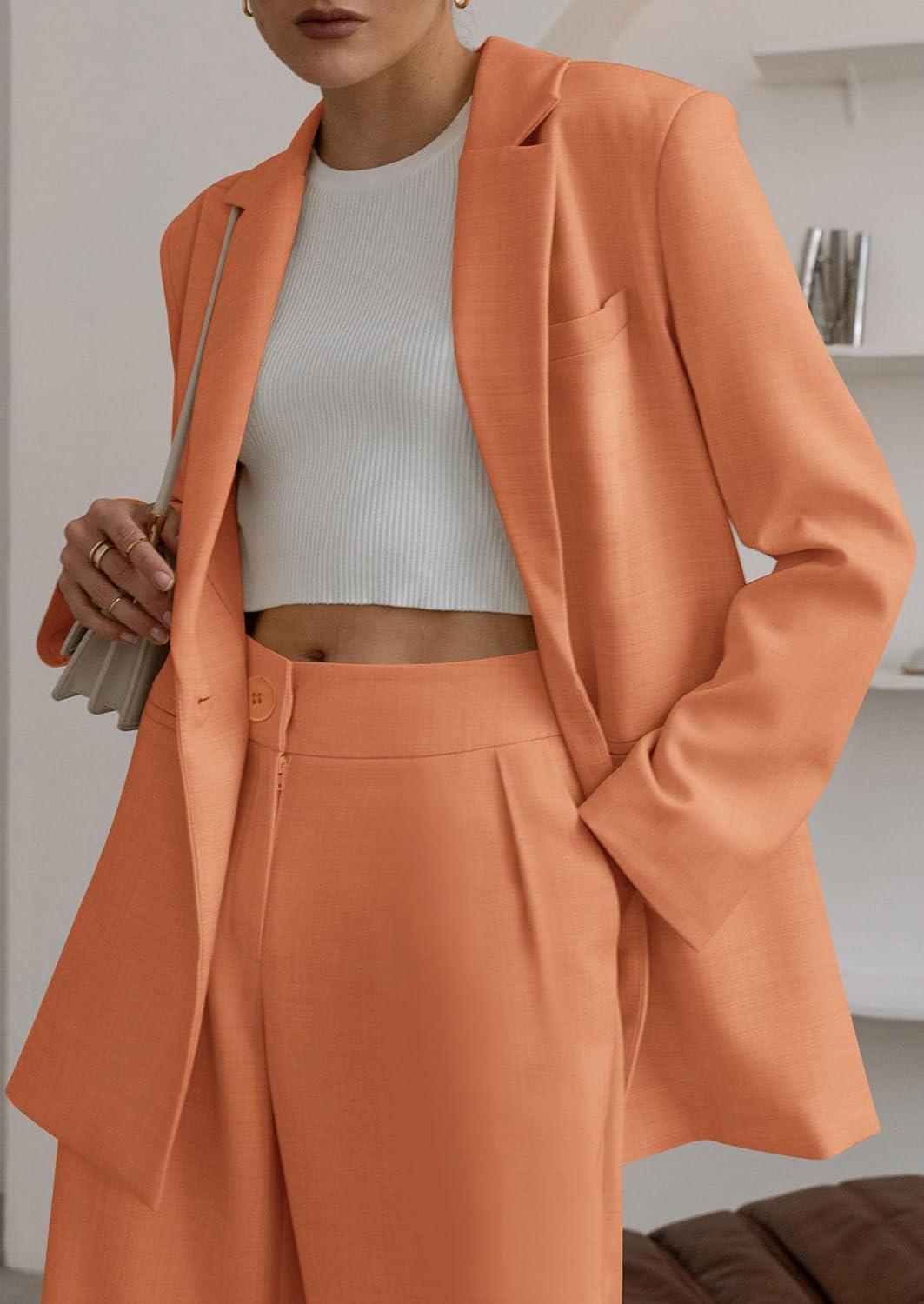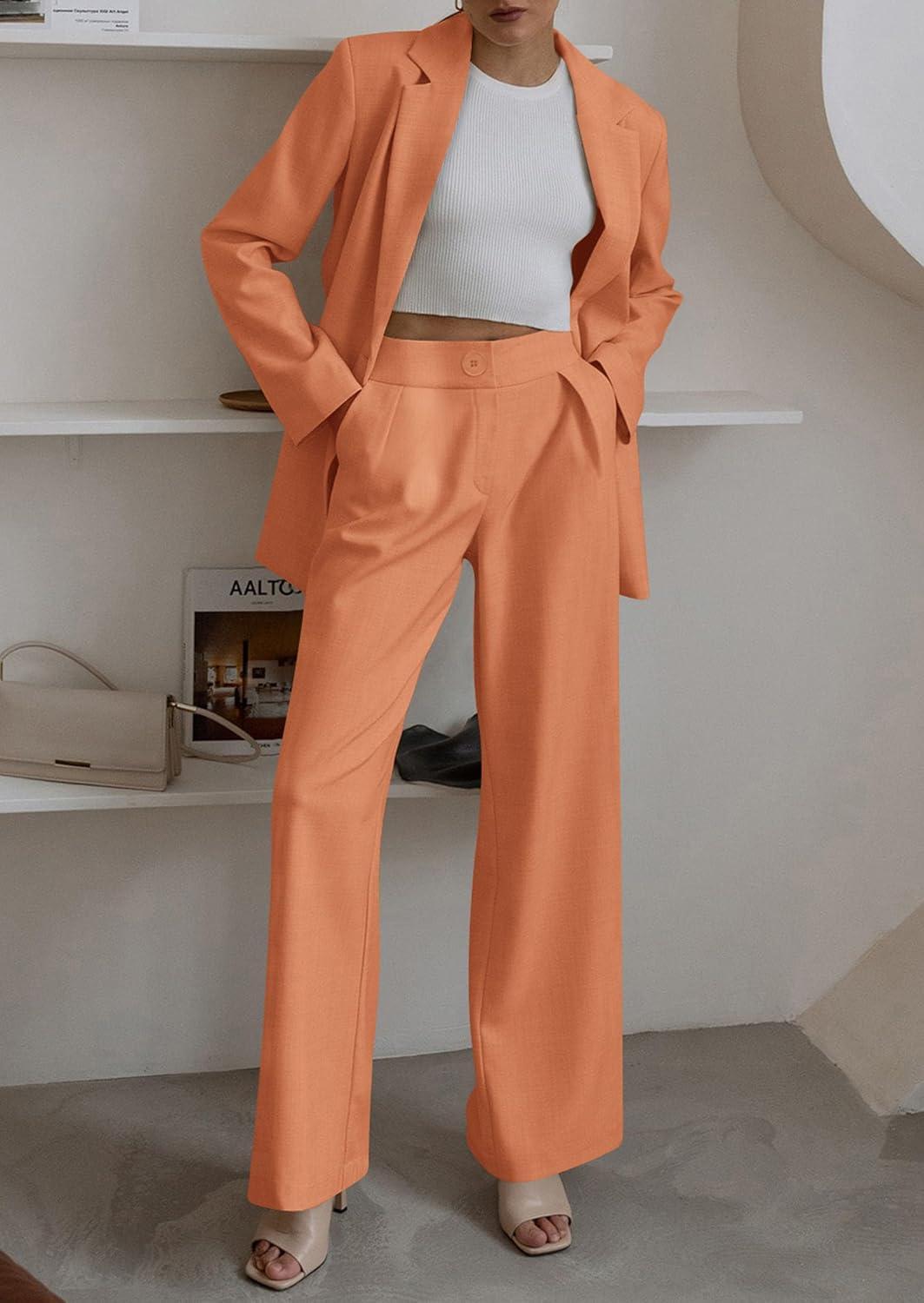 PRETTYGARDEN Women's Two Piece Outfits Dressy Blazer Jacket Wide Leg Pants 2025 Fall Business Casual Office Work Suit Sets(Orange)