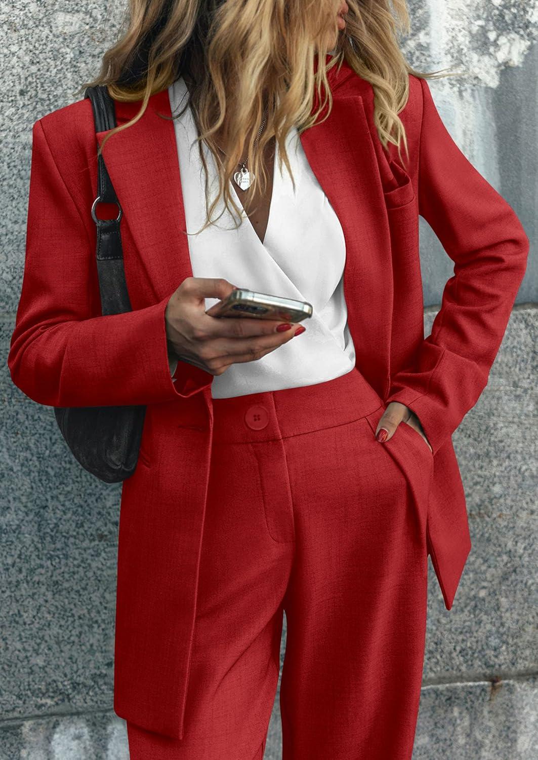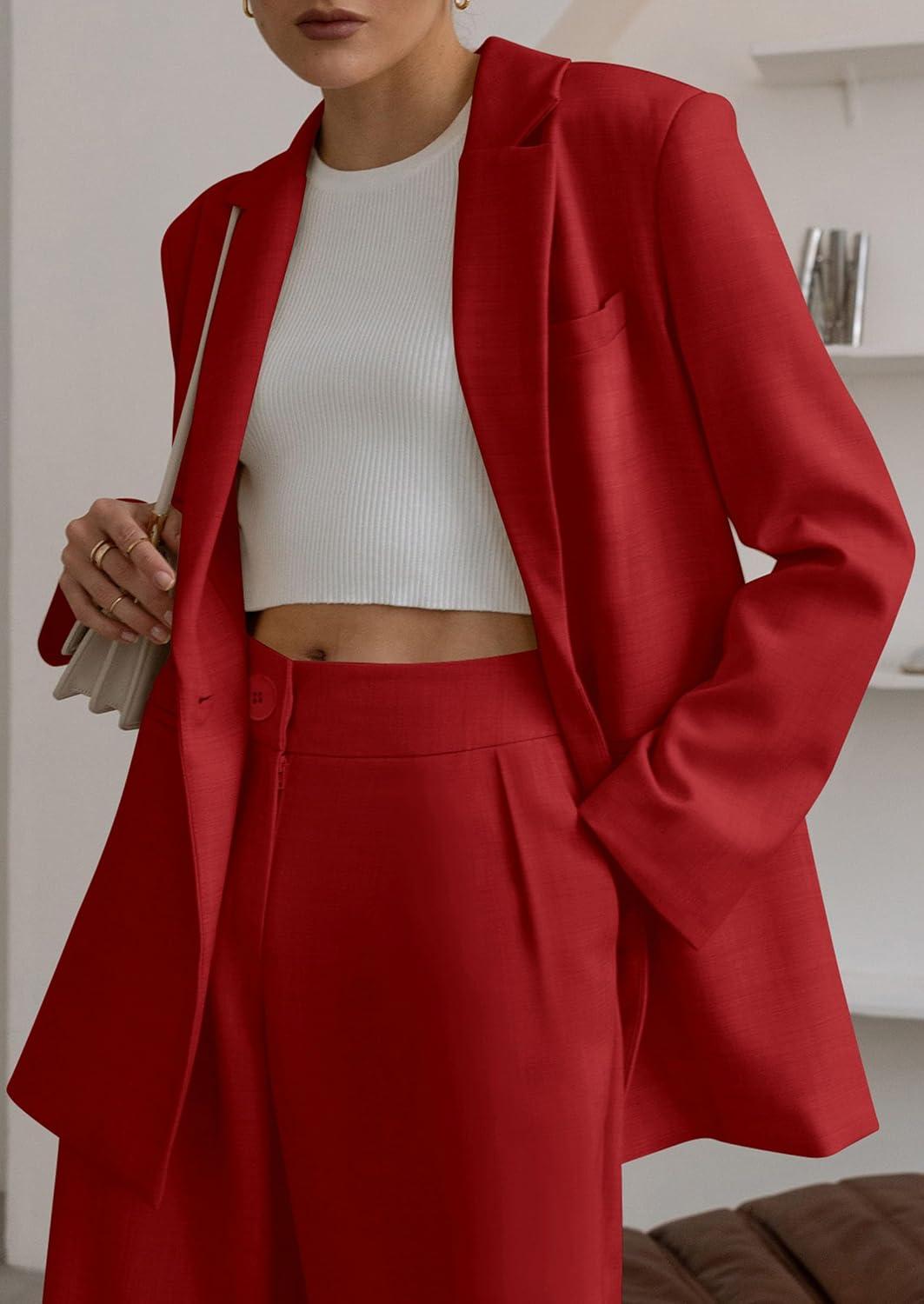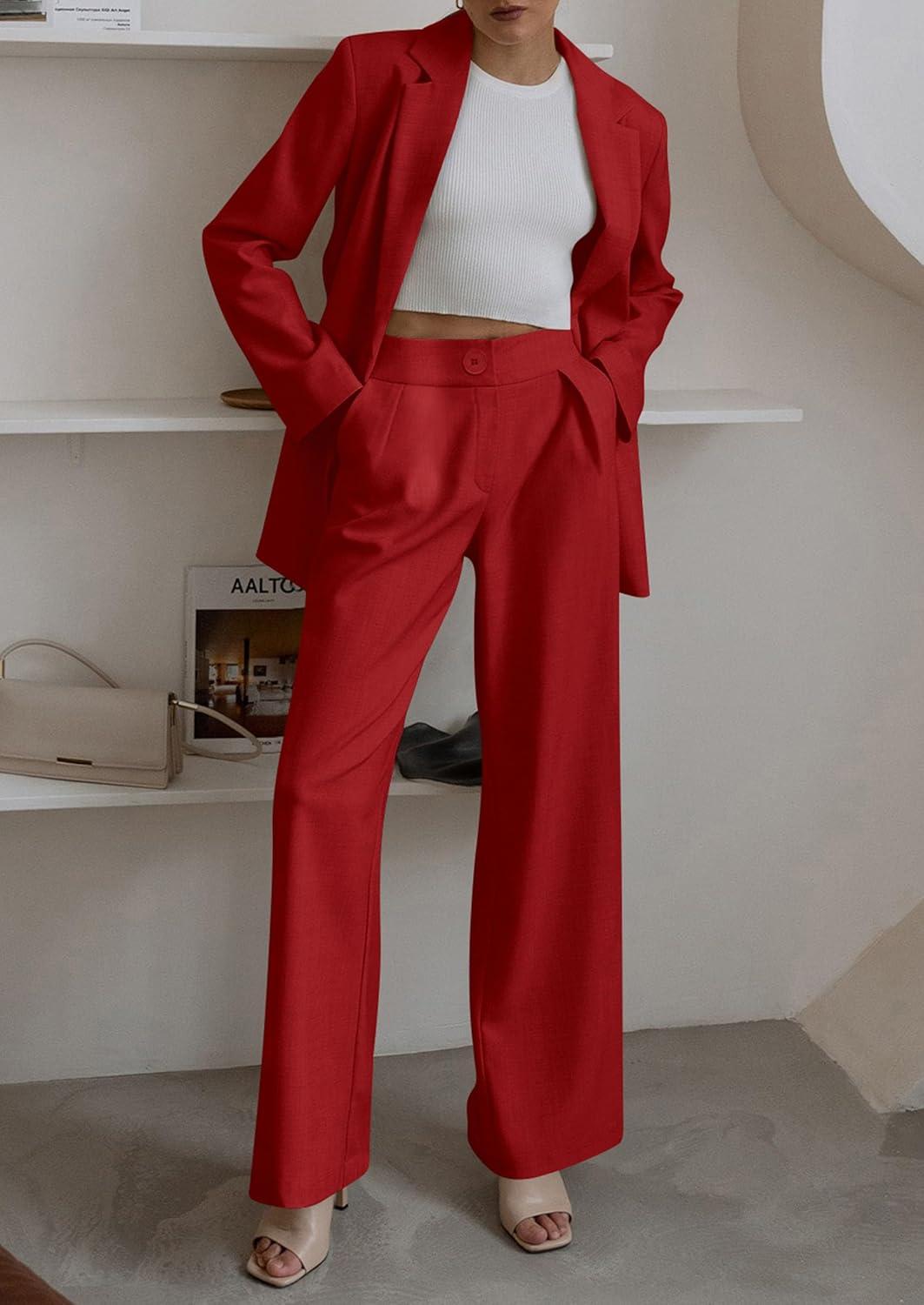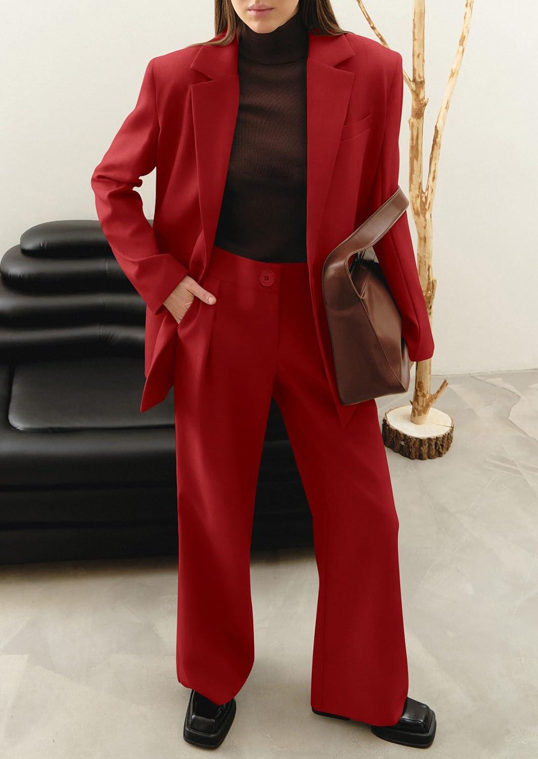 Don’t miss out on our limited-time offer: buy PRETTYGARDEN Women’s Two Piece Outfits Dressy Blazer Jacket Wide Leg Pants 2025 Fall Business Casual Office Work Suit Sets(Red), get {accessory} free!