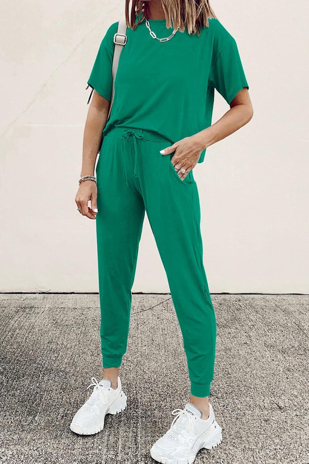 PRETTYGARDEN Women’s Two Piece Sets 2025 Summer Spring Jogger Pants Travel Vacation Lounge Outfits Airplane Matching Clothes(Bright Green)