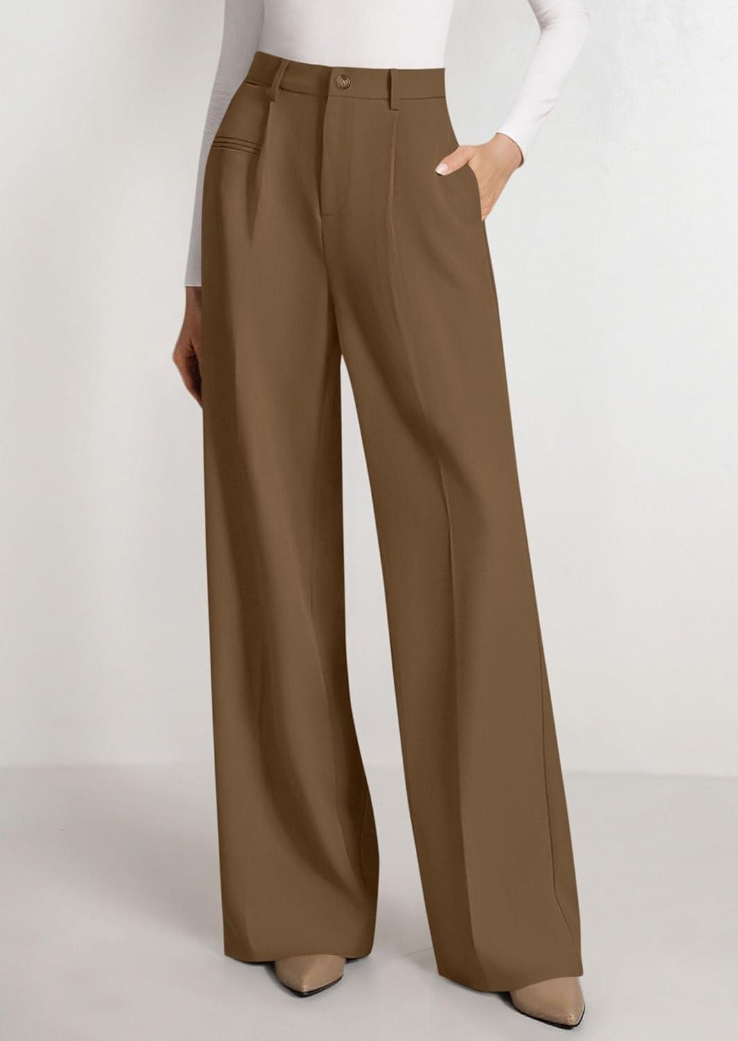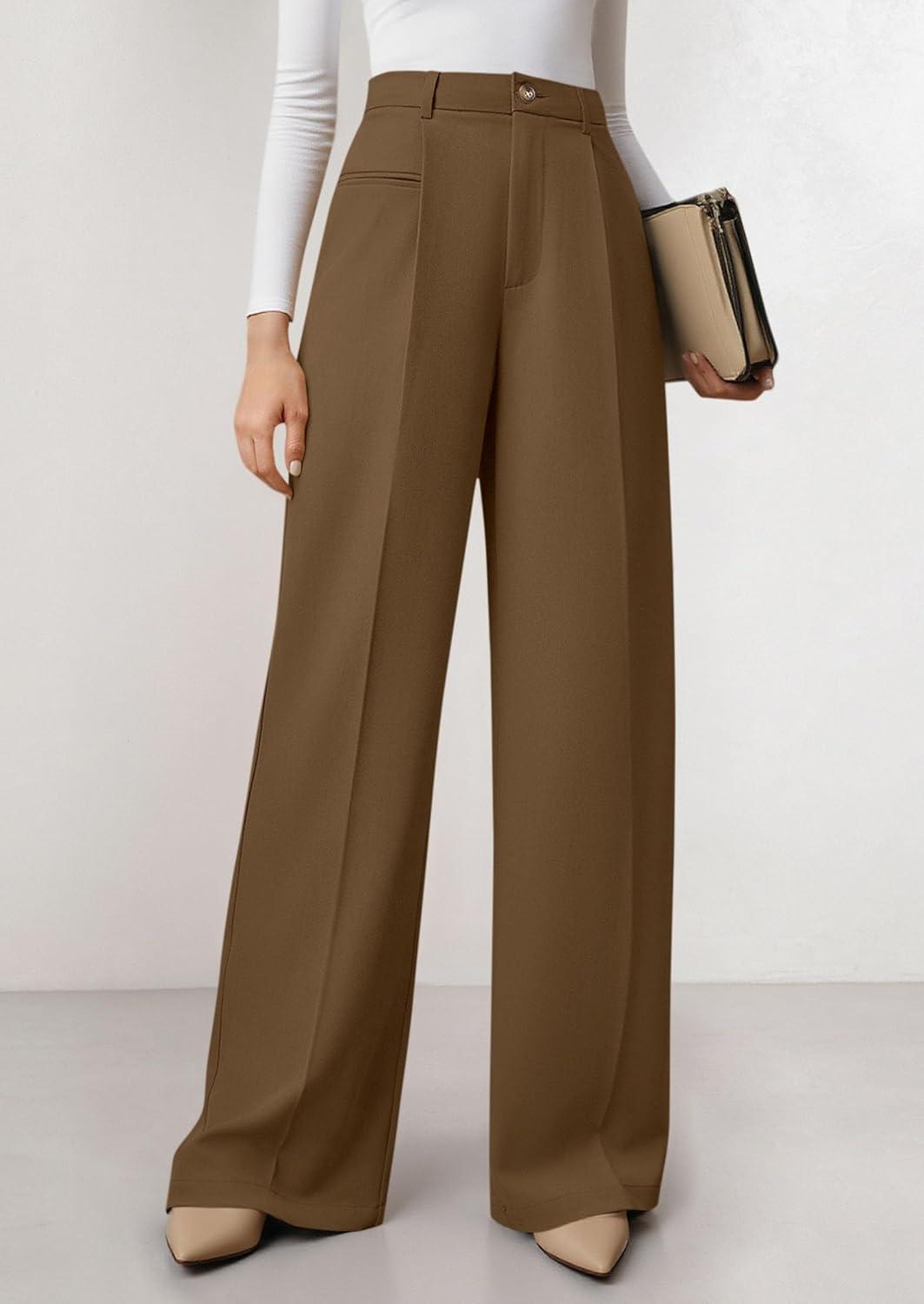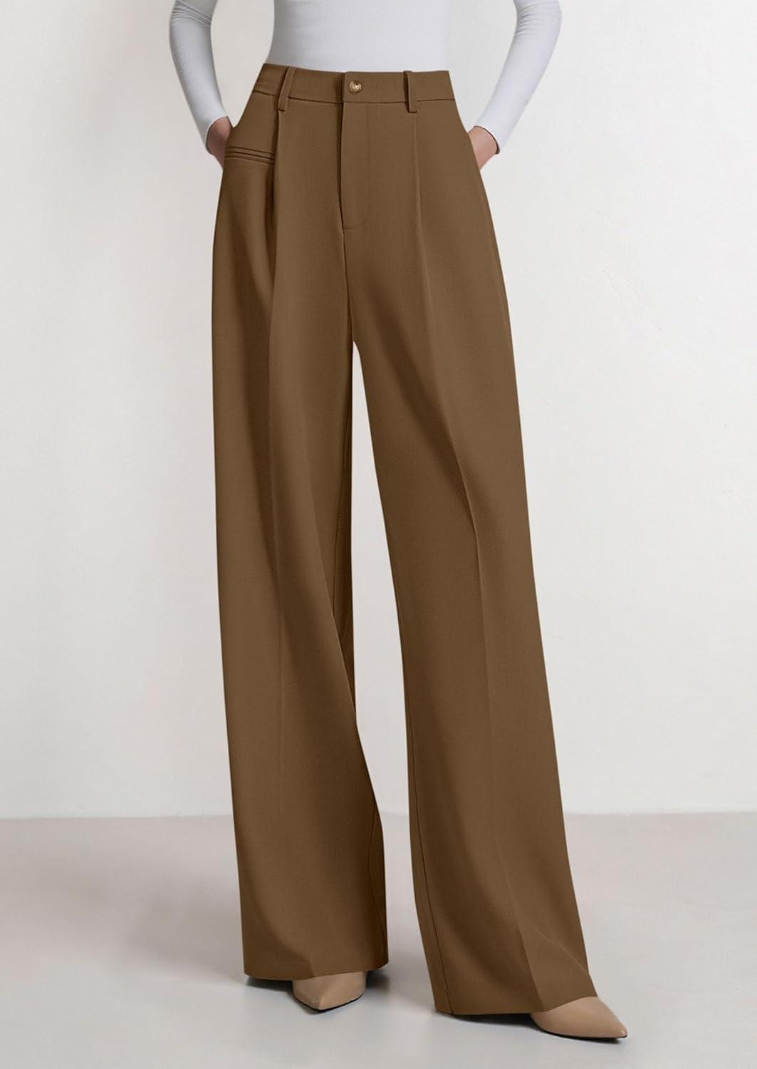 PRETTYGARDEN Womens Wide Leg Dress Pants 2025 Business Casual Flowy Work Palazzo Pants High Waisted Slacks Trousers(Brown)