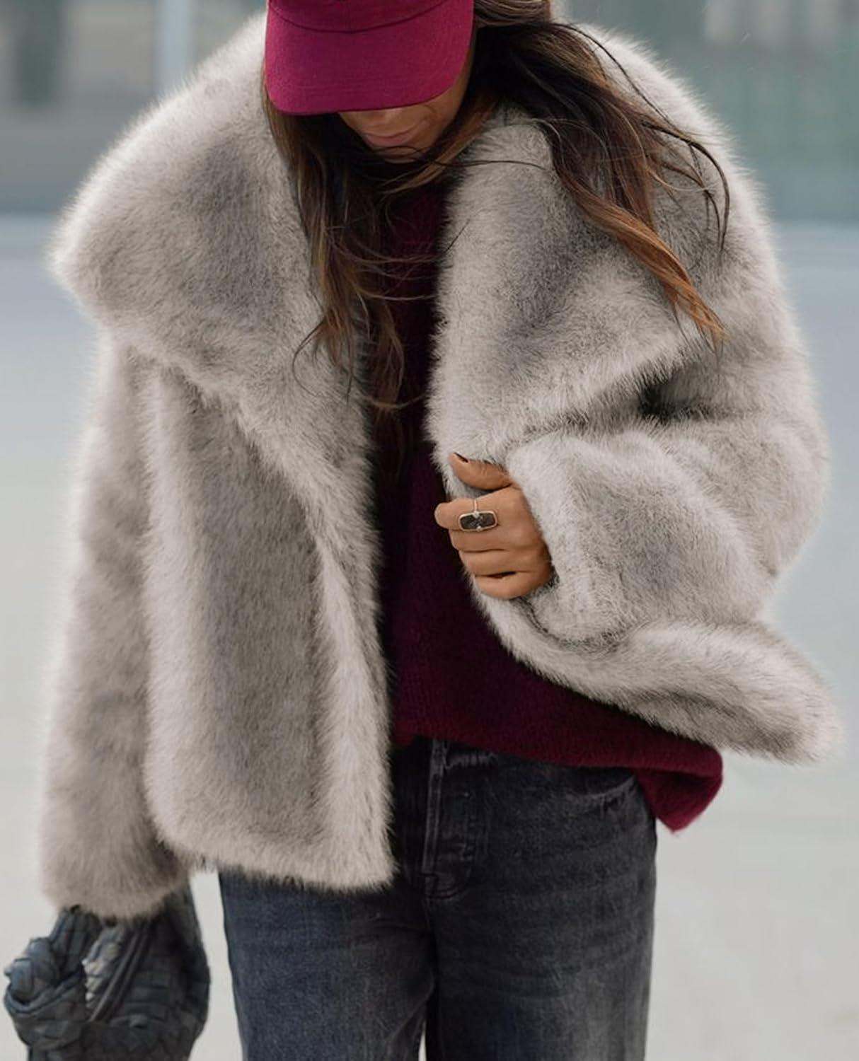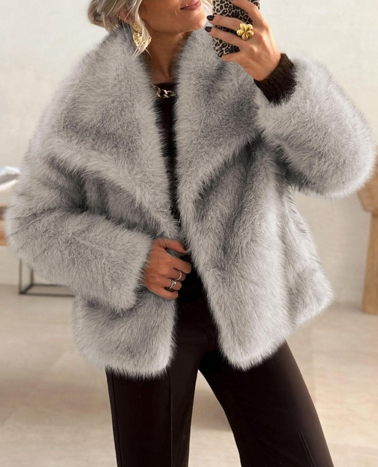 PRETTYGARDEN Womens Winter Coats 2025 Trendy Long Sleeve Furry Faux Fur Jackets Button Lapel Warm Fall Outwear with Pockets(Black)