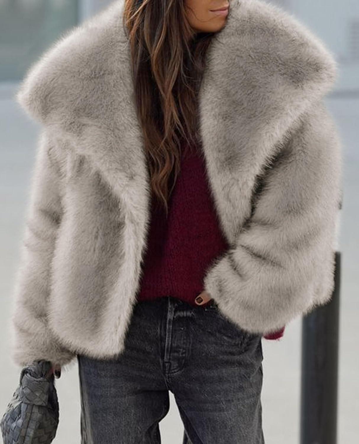 imagePRETTYGARDEN Womens Winter Coats 2025 Trendy Long Sleeve Furry Faux Fur Jackets Button Lapel Warm Fall Outwear with PocketsBlack Khaki