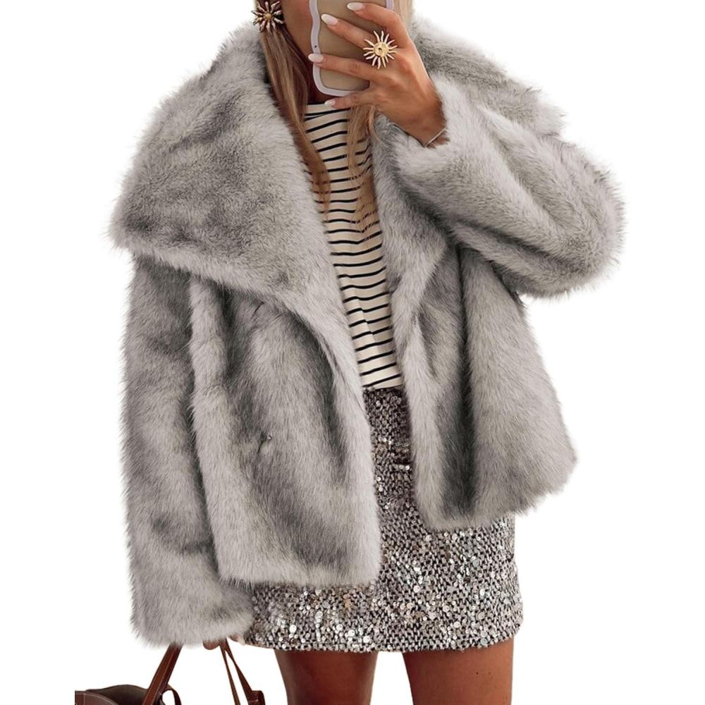PRETTYGARDEN Womens Winter Coats 2025 Trendy Long Sleeve Furry Faux Fur Jackets Button Lapel Warm Fall Outwear with Pockets(Black Khaki)