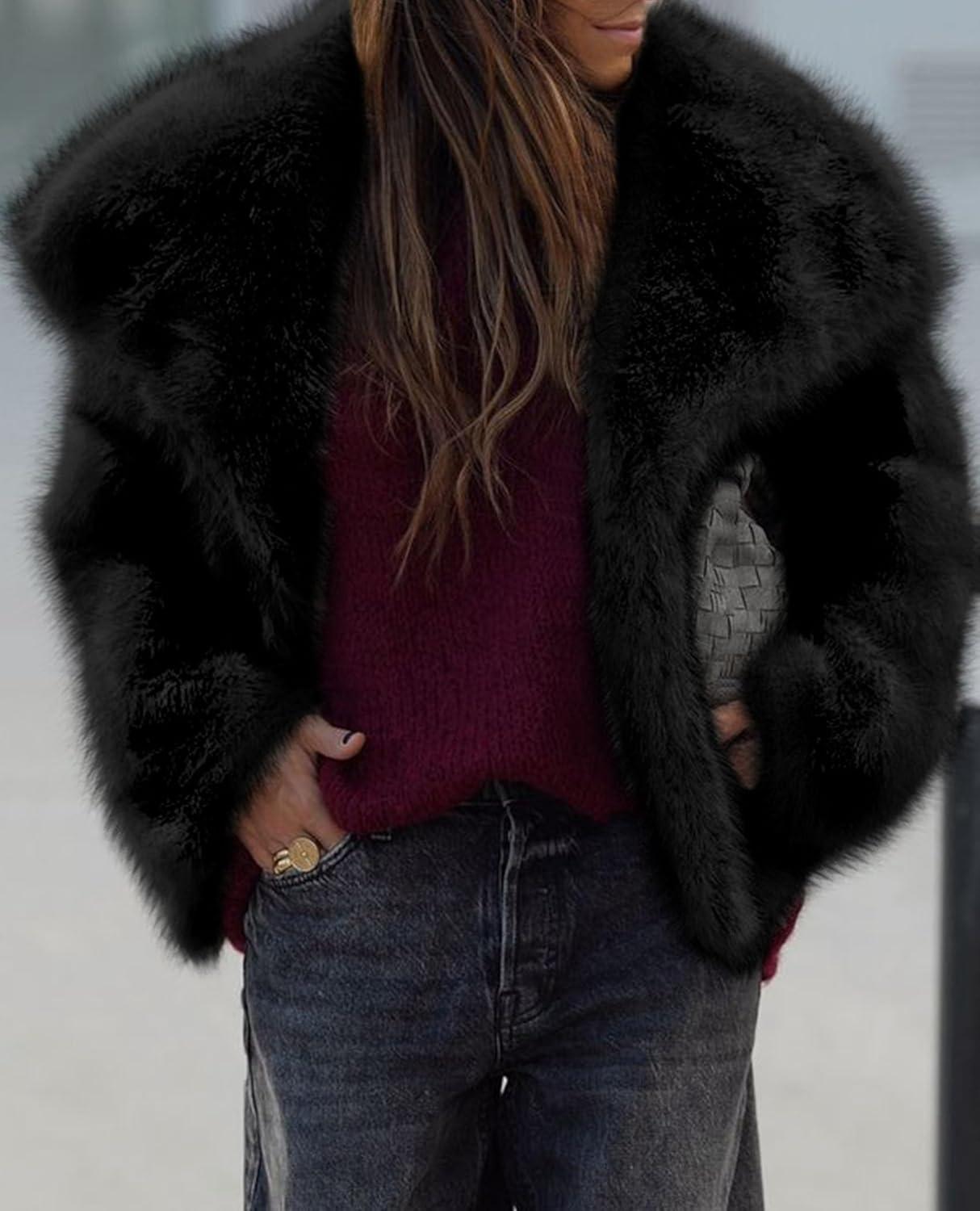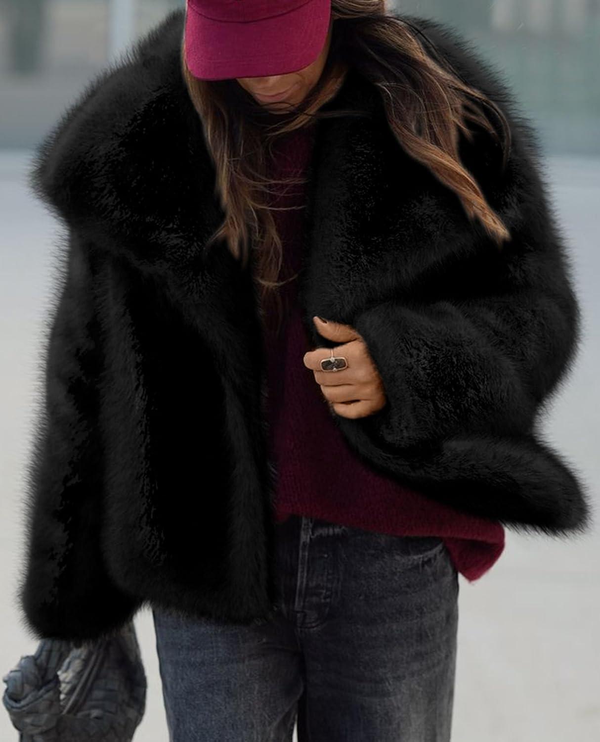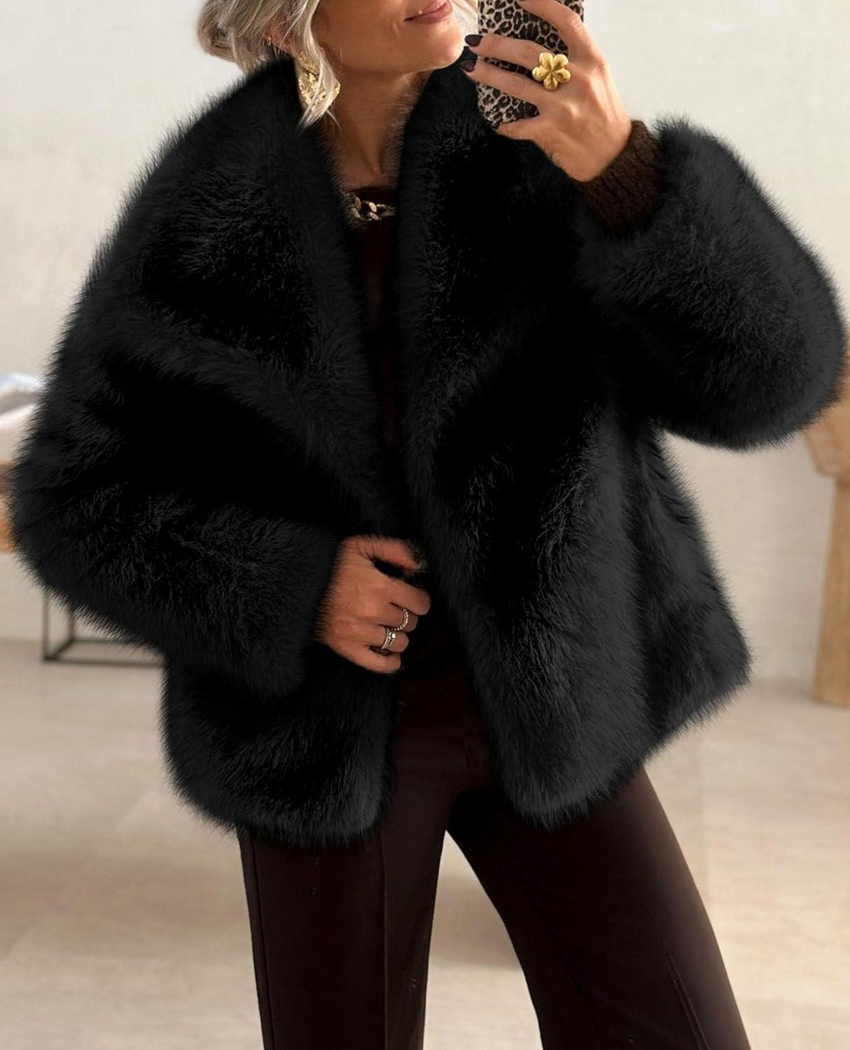 PRETTYGARDEN Womens Winter Coats 2025 Trendy Long Sleeve Furry Faux Fur Jackets Button Lapel Warm Fall Outwear with Pockets(Black)