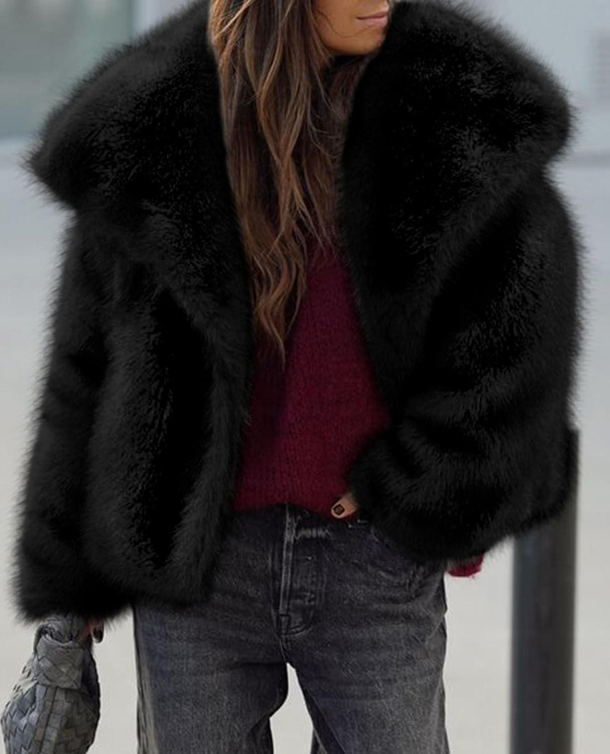 imagePRETTYGARDEN Womens Winter Coats 2025 Trendy Long Sleeve Furry Faux Fur Jackets Button Lapel Warm Fall Outwear with PocketsBlack