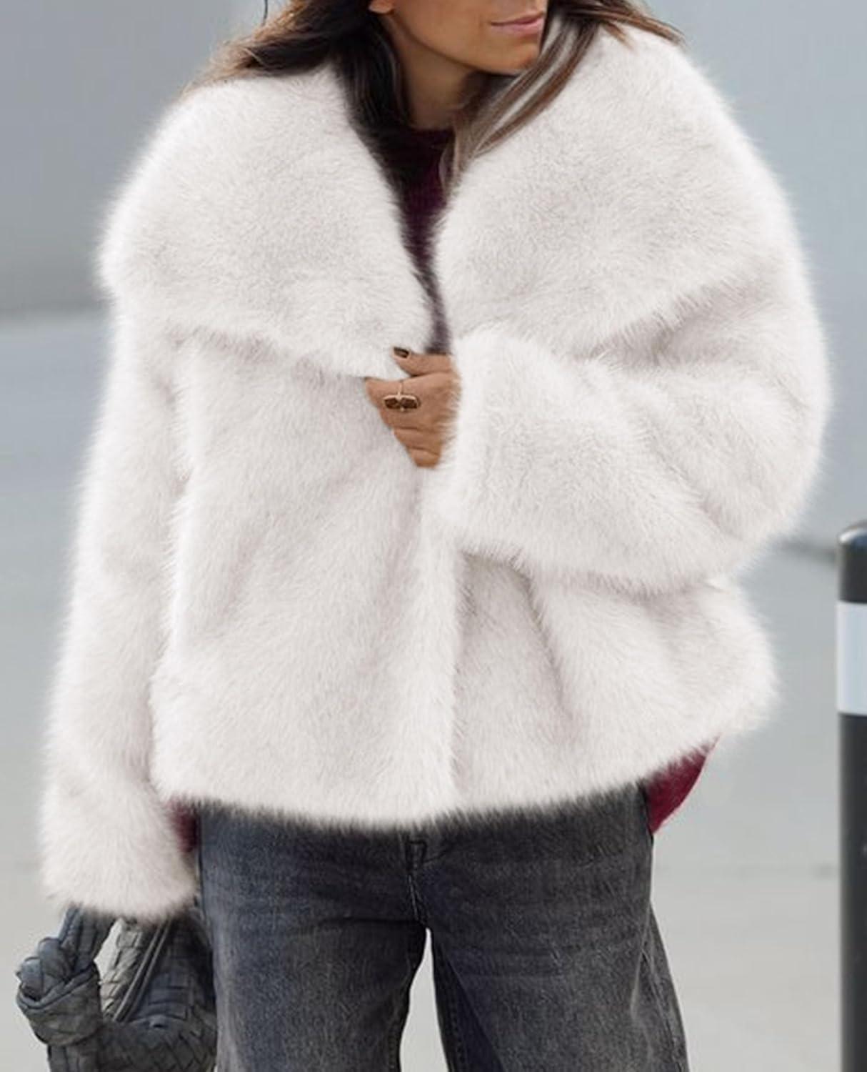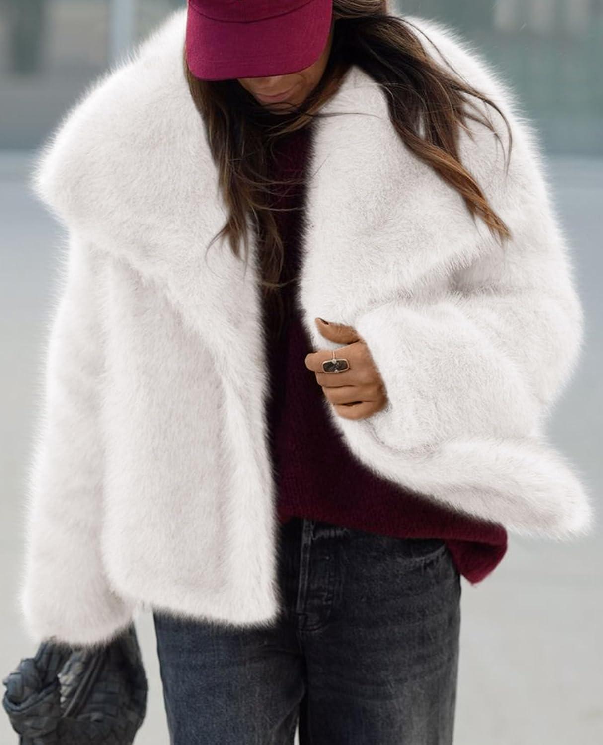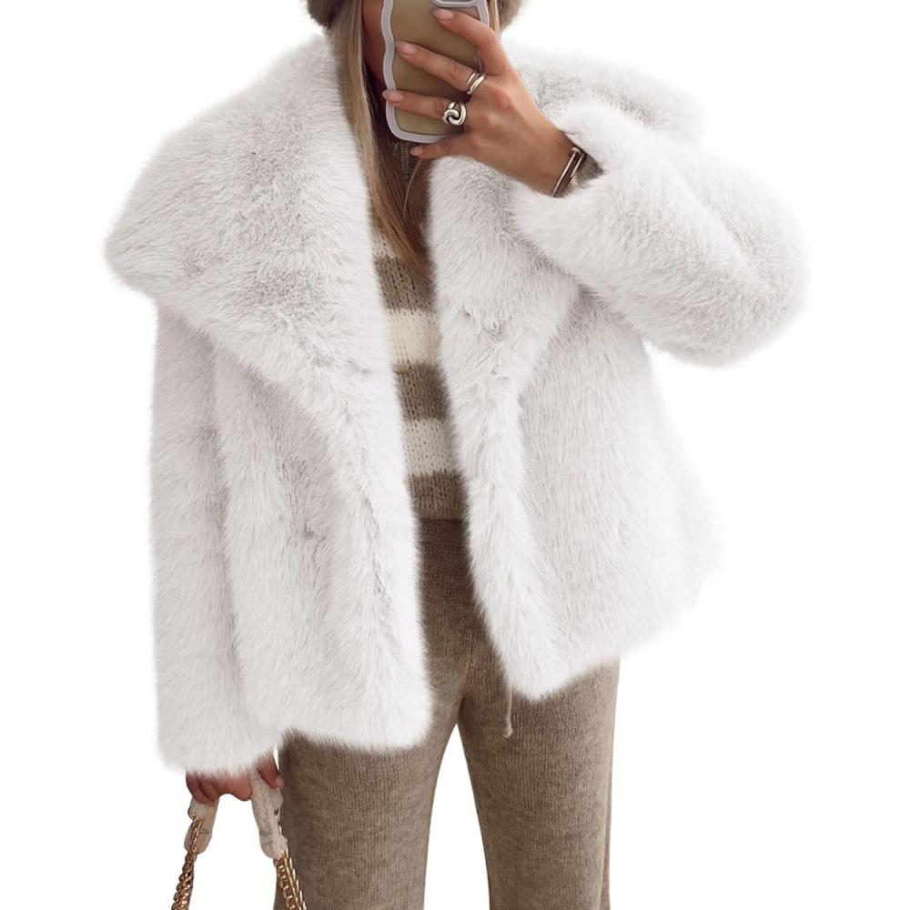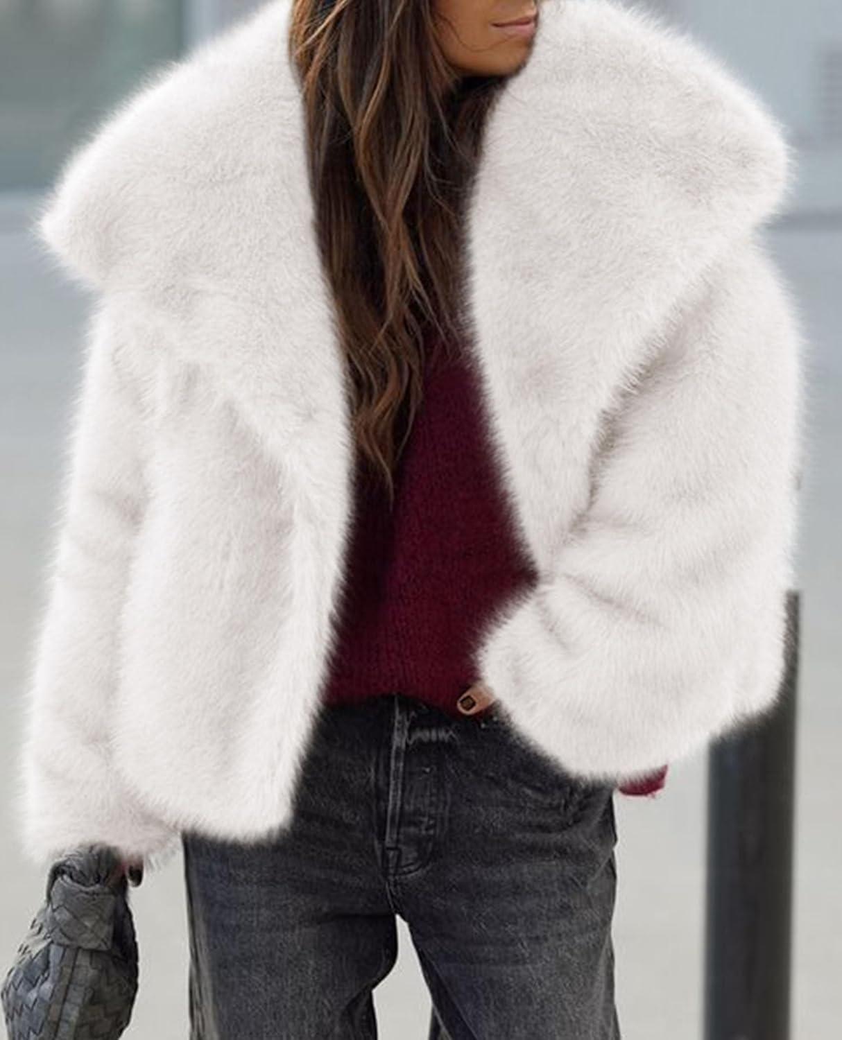PRETTYGARDEN Womens Winter Coats 2025 Trendy Long Sleeve Furry Faux Fur Jackets Button Lapel Warm Fall Outwear with Pockets(White)