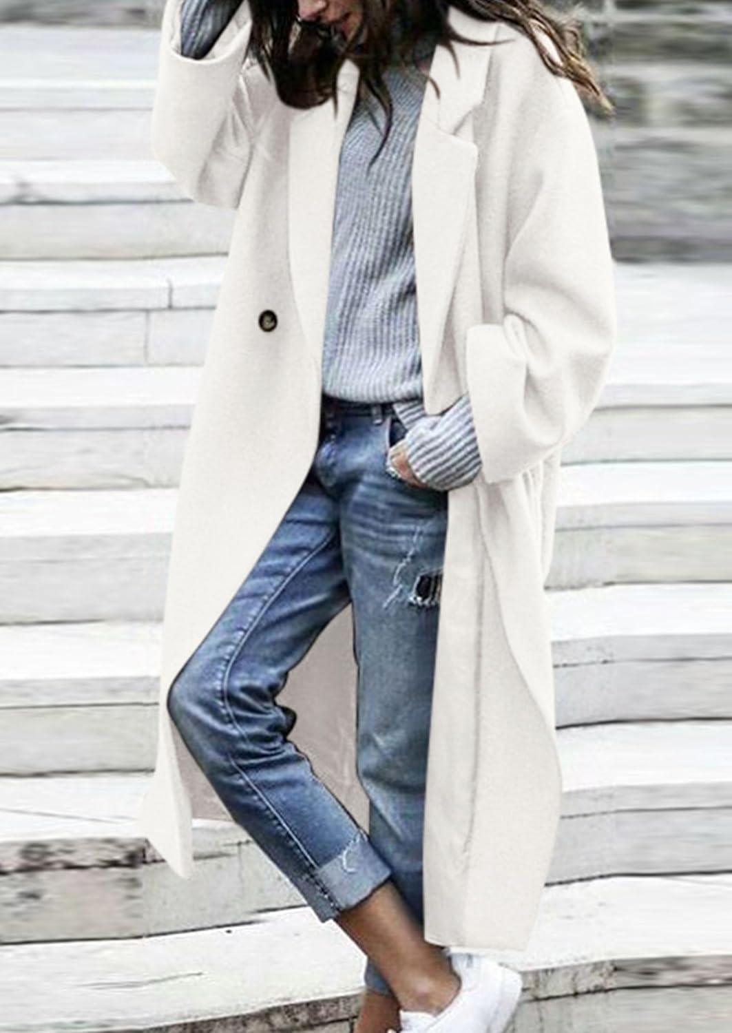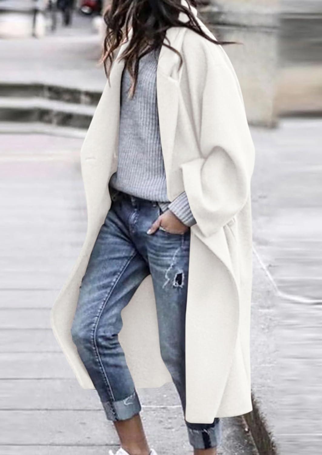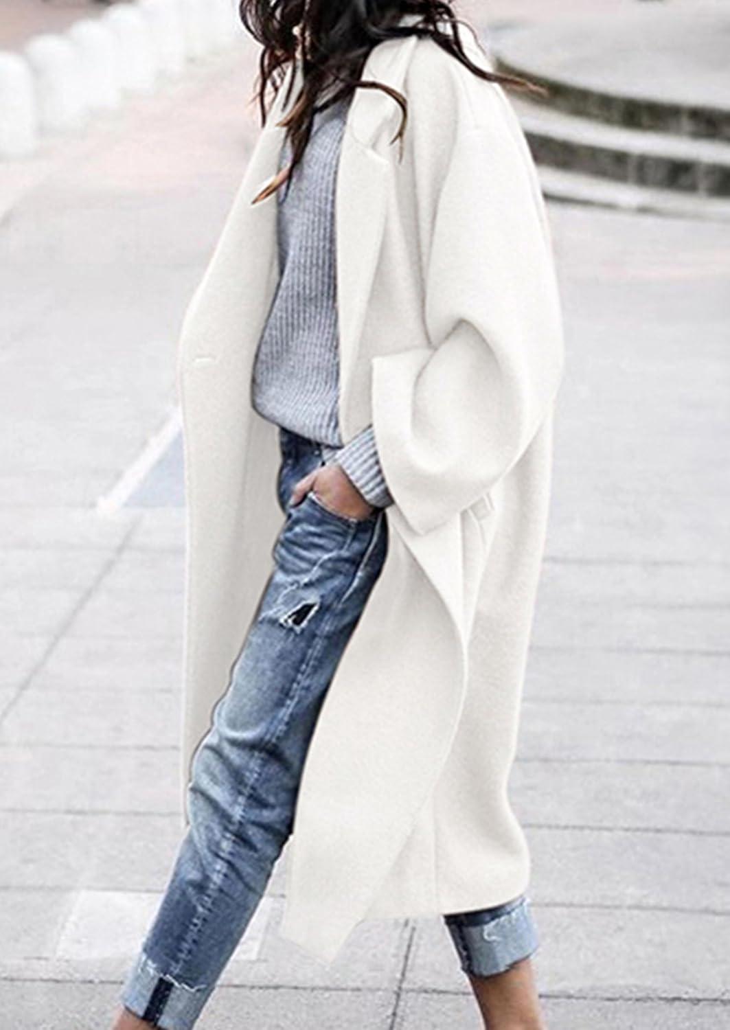 PRETTYGARDEN Womens Winter Coats 2025 Trendy Long Sleeve Notch Lapel Button Long Jackets Casual Oversized Vacation Outfits(White)