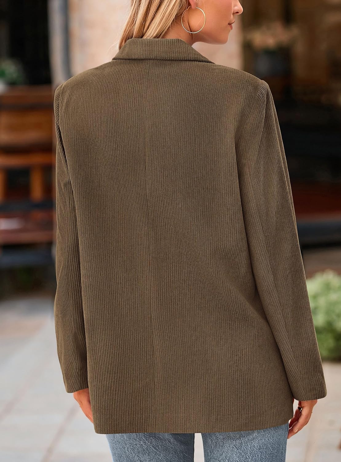 imagePRETTYGARDEN Womens Winter Corduroy Blazers Jackets Dressy Casual Ribbed Long Sleeve Lapel Fashion Work Business OuterwearBrown Coffee