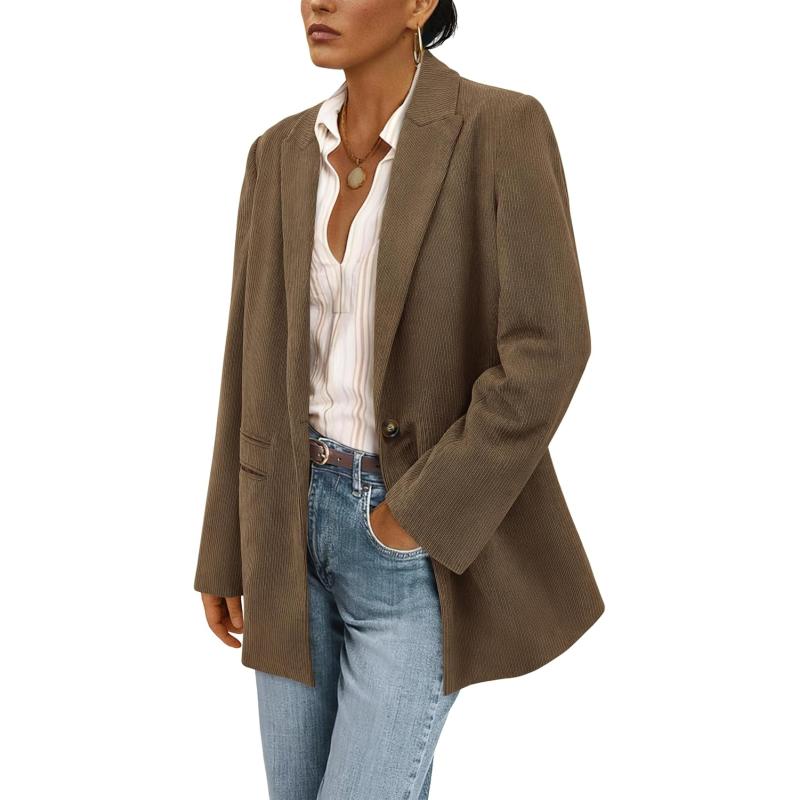 PRETTYGARDEN Women's Winter Corduroy Blazers Jackets Dressy Casual Ribbed Long Sleeve Lapel Fashion Work Business Outerwear(Brown Coffee)