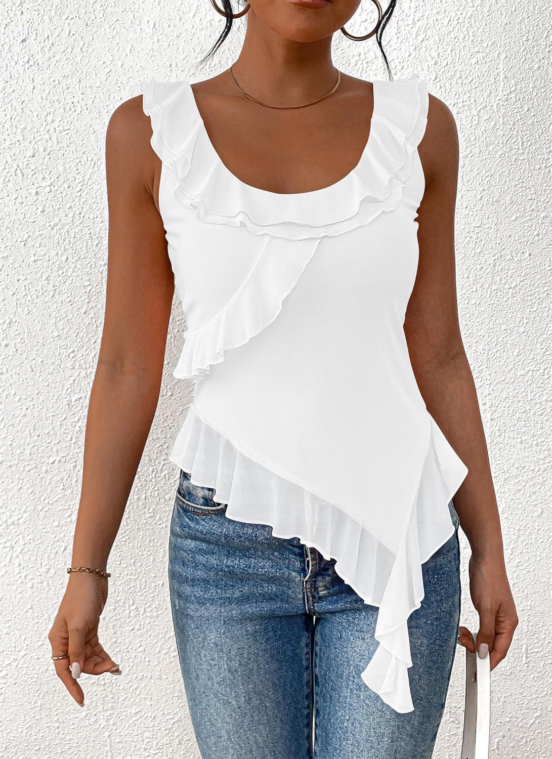 Don’t miss out on our limited-time offer: buy PRETTYGARDEN Women’s Y2K Going Out Crop Top 2024 Summer Sleeveless Asymmetrical Mesh Tank Top Fitted Party Tops(White), get {accessory} 50% off!