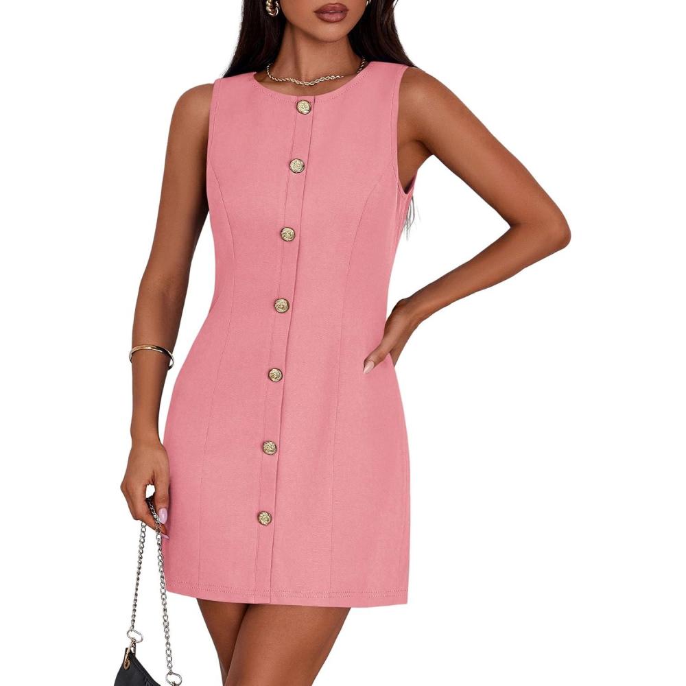 PRETTYGARDEN Work Dresses for Women 2026 Summer Business Formal Short Dress Sleeveless Button Down Elegant Office Outfits(Pink)